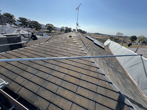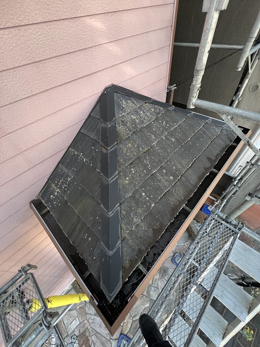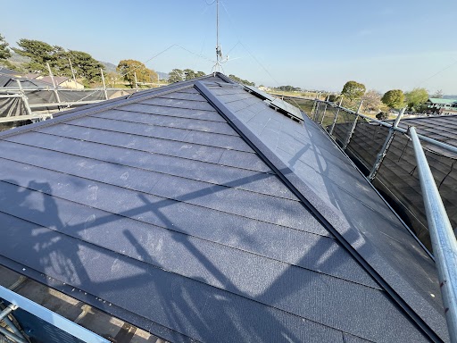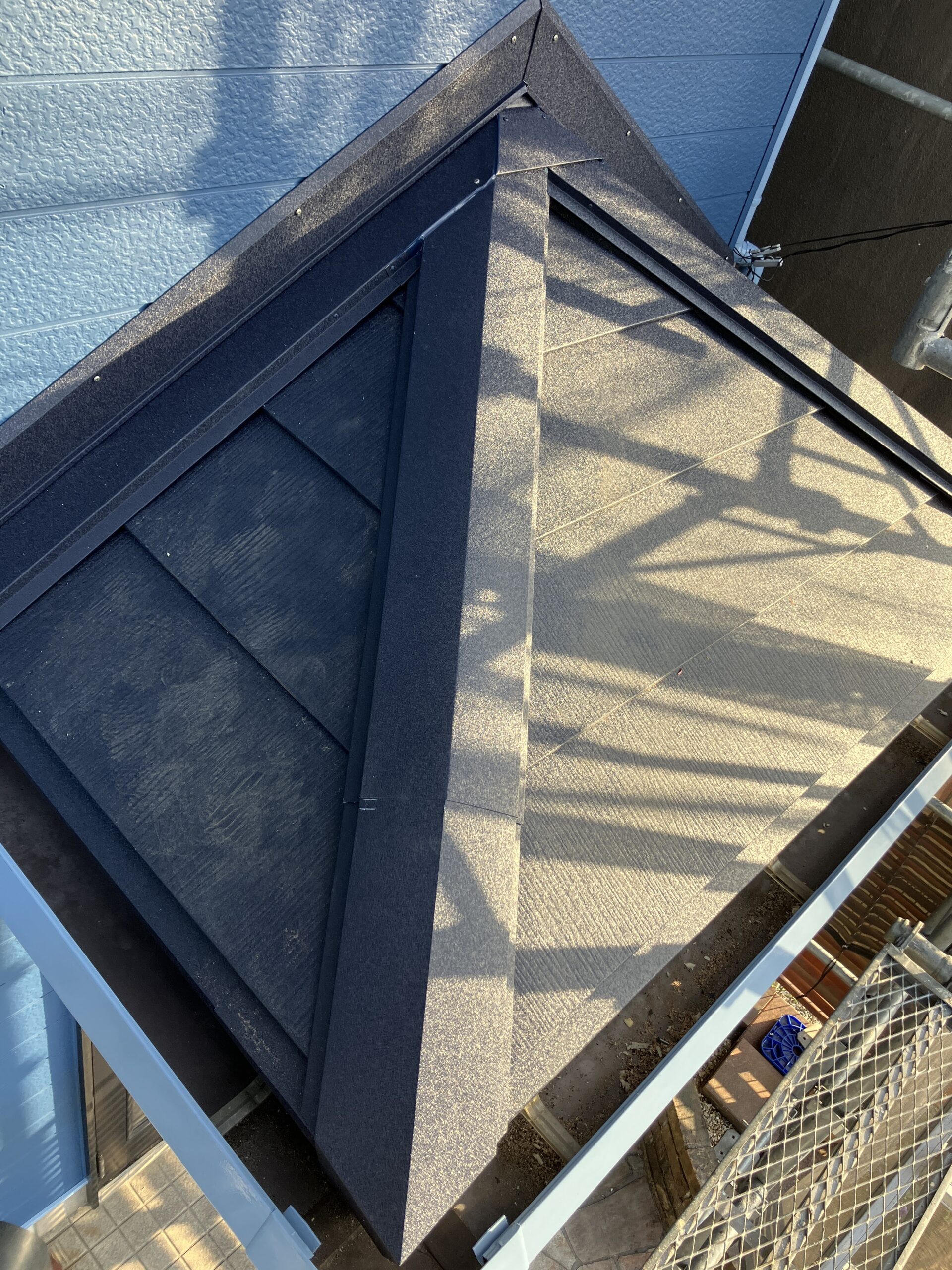 屋根スレートがかなり劣化した状態でしたのでカバー工事と合わせ塗装工事も一緒に行いました