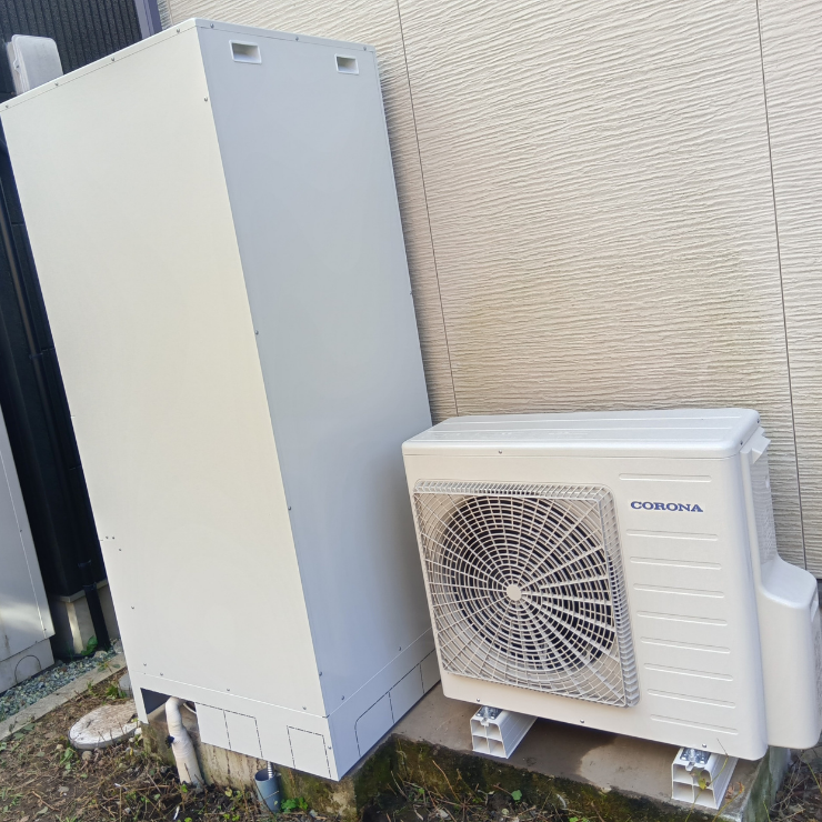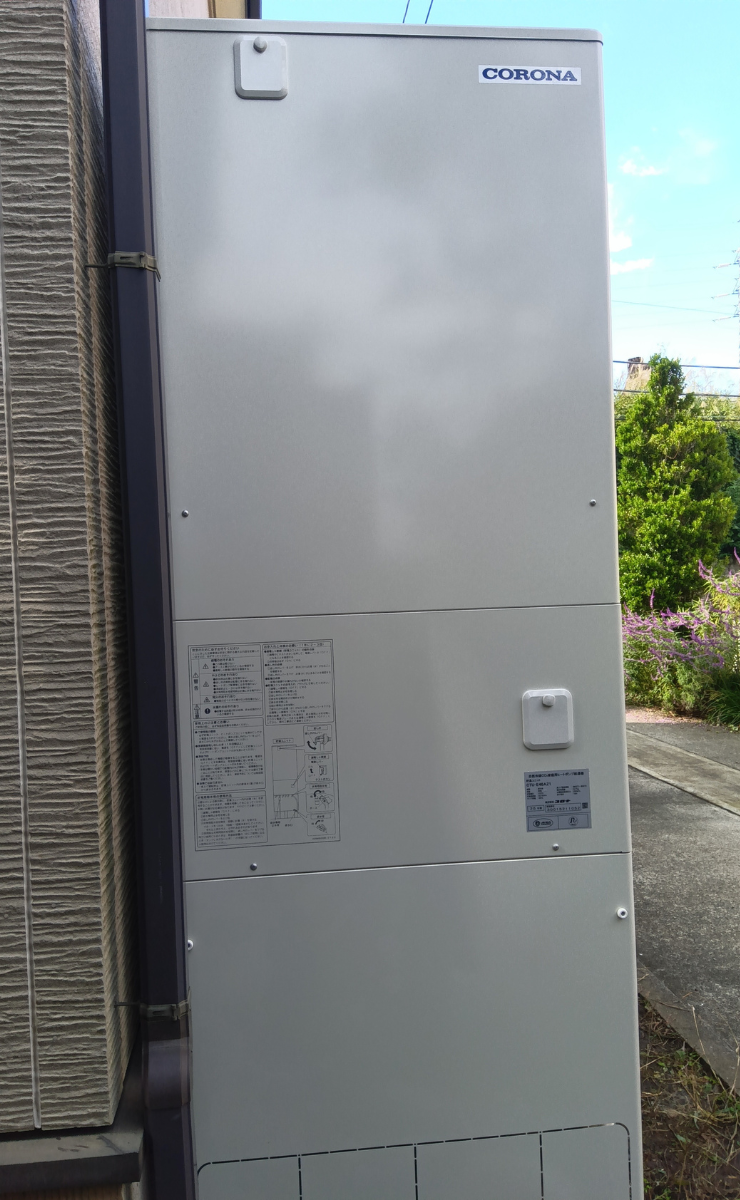 弊社でお任せいただきありがとうございます。長府のエコキュート370Lから、今回はコロナ460Lへ変更させていただきました。容量が増えたので、今後はお湯切れの心配なく安心して使ってくださいね。今後もご自宅のことでお困りごとがあれば、いつでもご相談ください!
