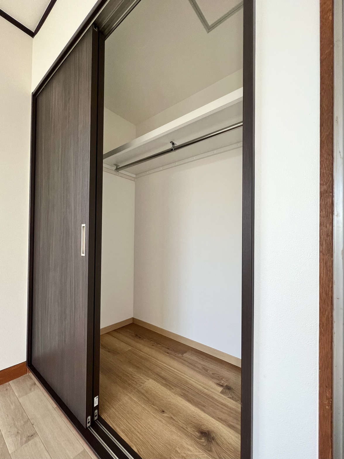 2段の押入の開口部を高くして引戸を付けました。中はハンガーに洋服をかけれる様にウォークインクローゼットにリフォームしました!使い勝手が良くなりおススメです!