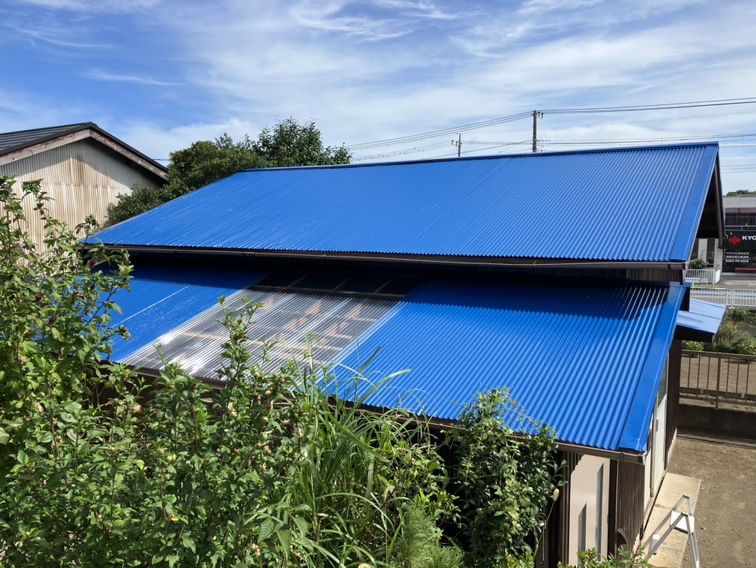 | 対応内容 | ・小屋塗装 ・トタン張替え ・建具交換 ・バルコニー設置 ・2階雨戸冊子部分コーキング(高所作業車使用) ・建具微調整 ・木の伐採 |