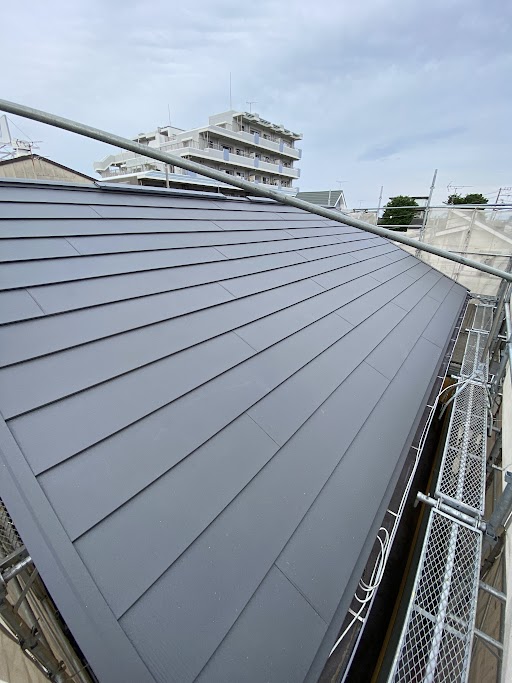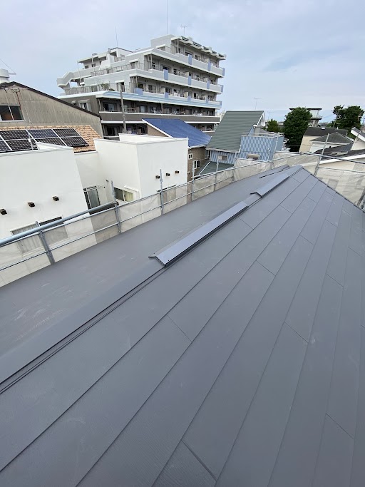 今回はスーパーガルテクトを屋根カバー材と提案させて頂きました。今後30年程の耐用年数を考えれば満足頂けると思います。この度は有難うございました。