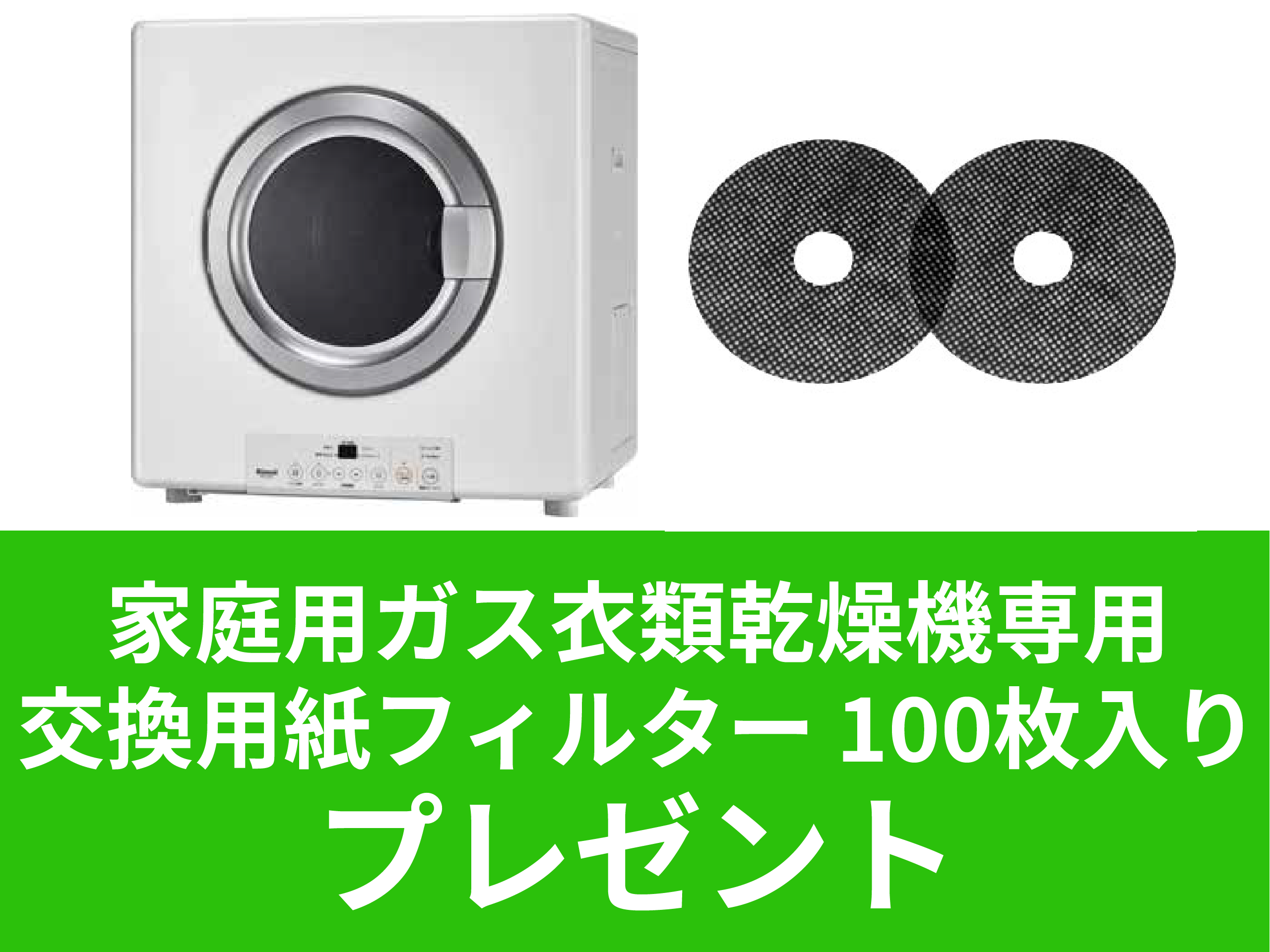 ガス衣類乾燥機乾太くんをご成約された方に古川公式LINEのクーポンご提示で交換用紙フィルター約2年分100枚をプレゼントいたします。※枚数は使用頻度によって変わります。