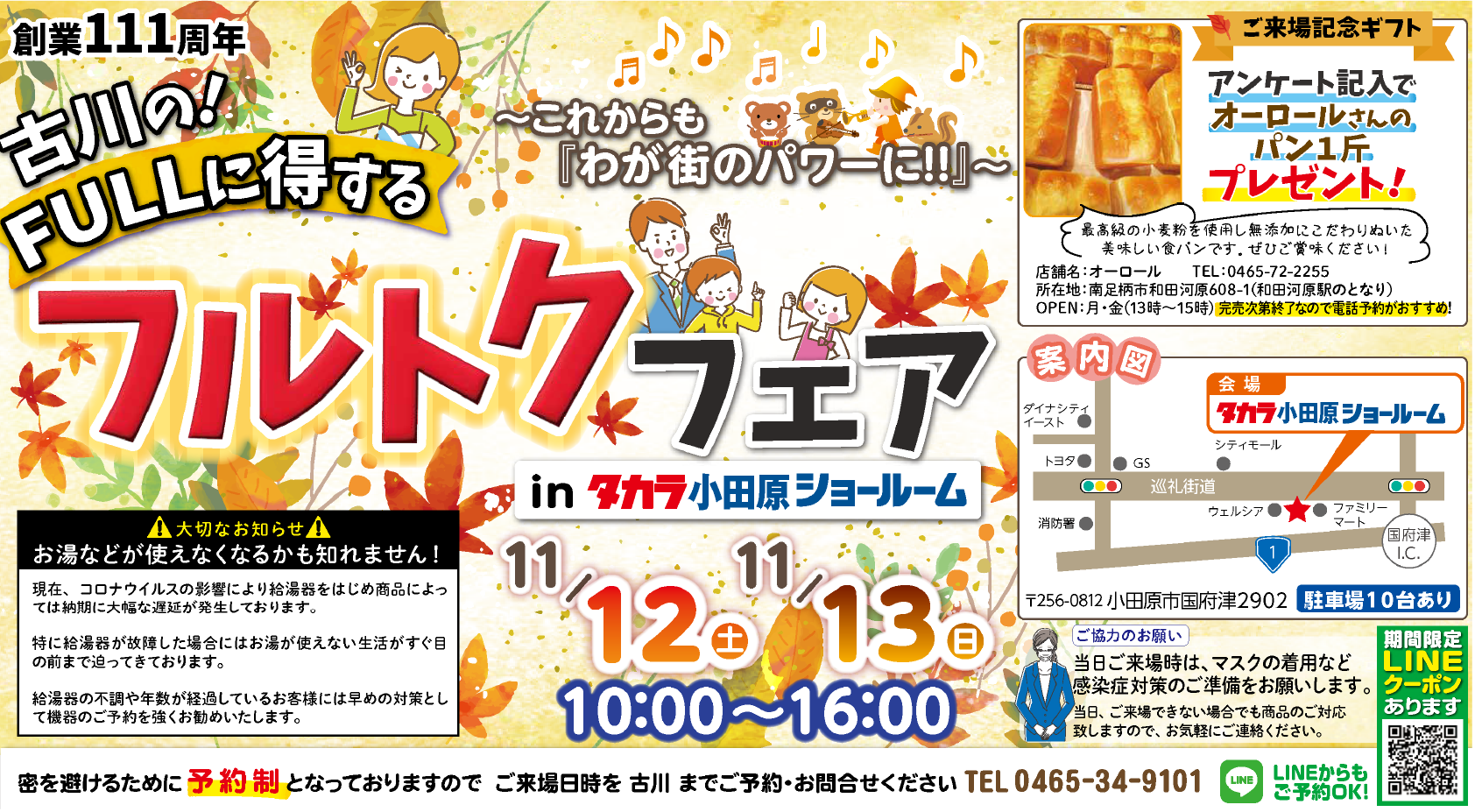 11月12(土)、13日(日)に『FULLに得するフルトクフェアinWinter』をタカラスタンダード小田原新ショールームにて開催いたします。